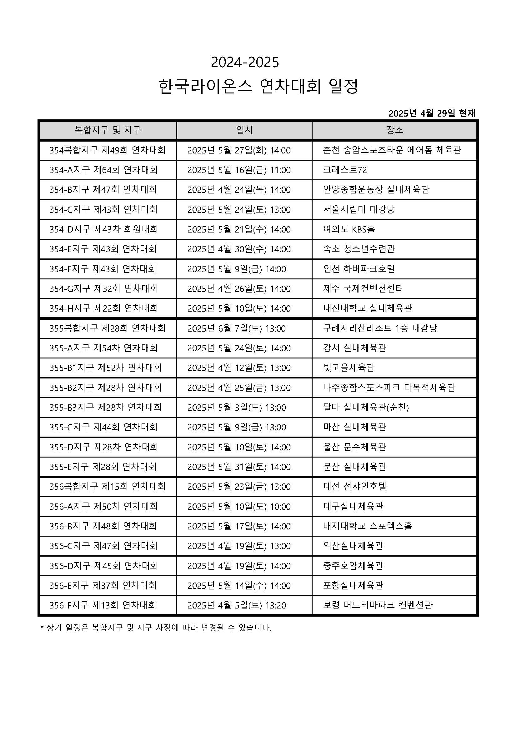 2024-2025 Çѱ¹¶óÀ̿½º ¿¬Â÷´ëȸ ÀÏÁ¤ (2025.4.29 ±âÁØ)